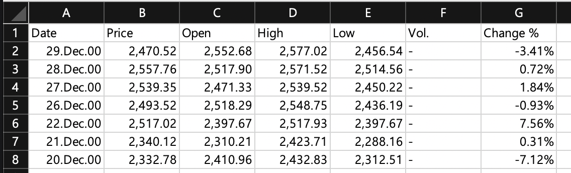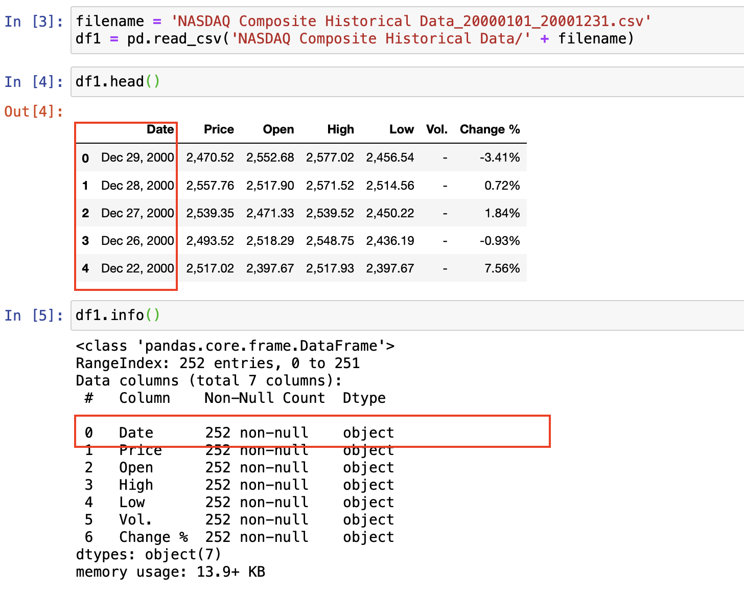 아무런 파라미터 세팅하지 않고 실행하면 'Date' 컬럼 타입은 Object가 된다.