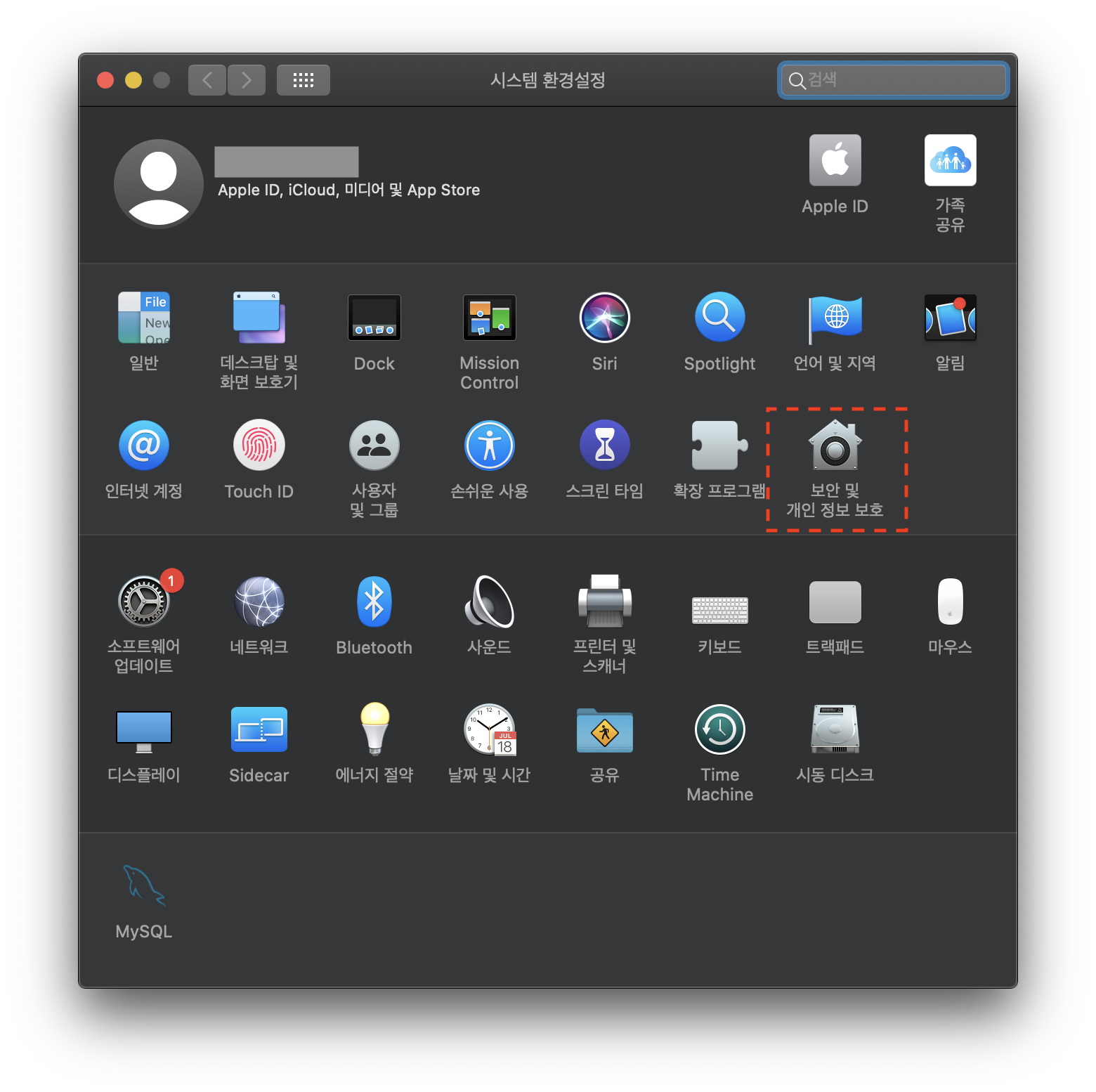 우선 "시스템 환경설정" 접속 -> "보안 및 개인정보보호" 클릭
